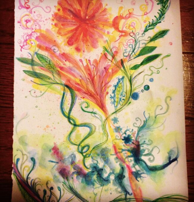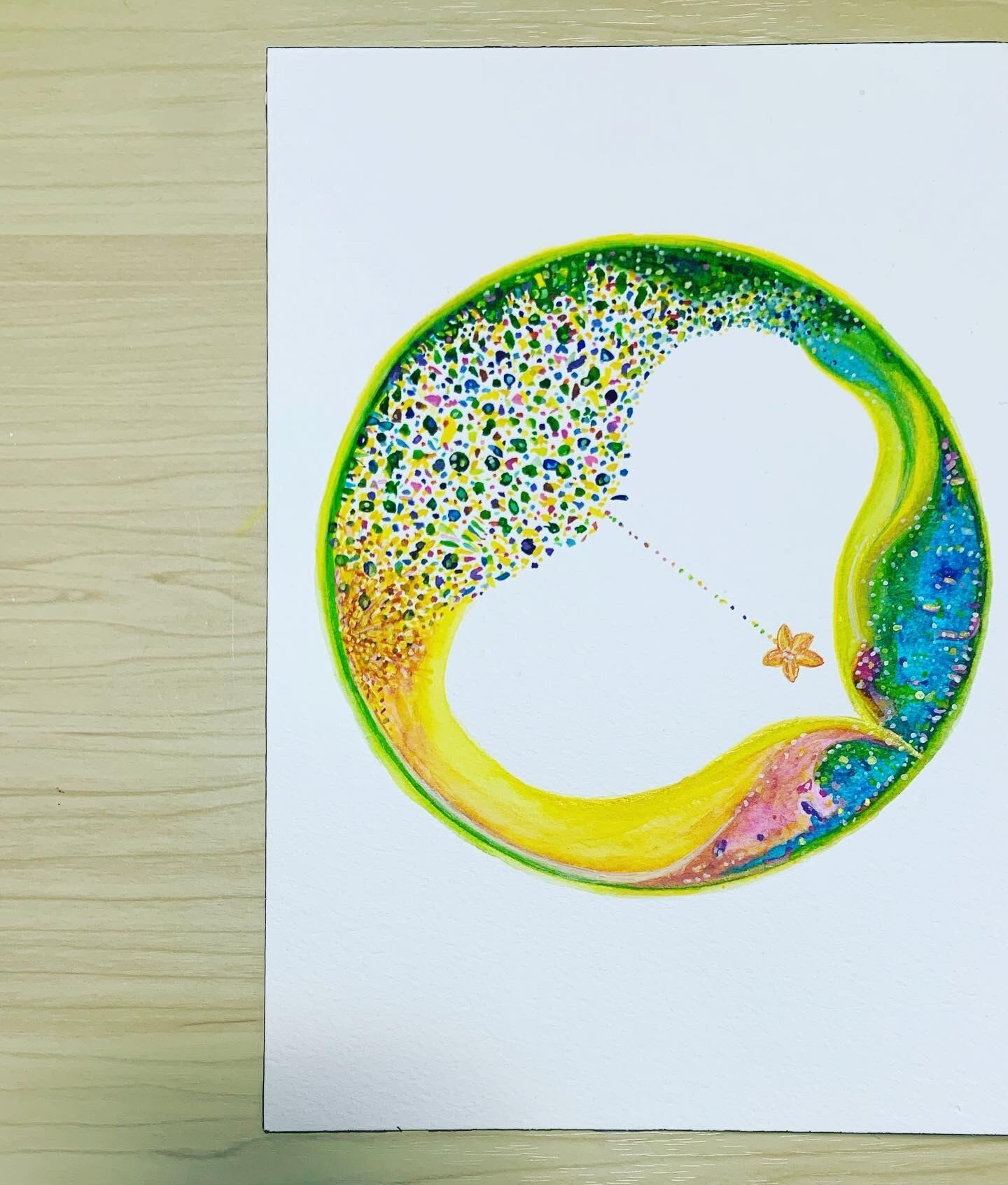 見えてくる色や形、インスピレーションをポストカードサイズの絵にします。(水彩色鉛筆)